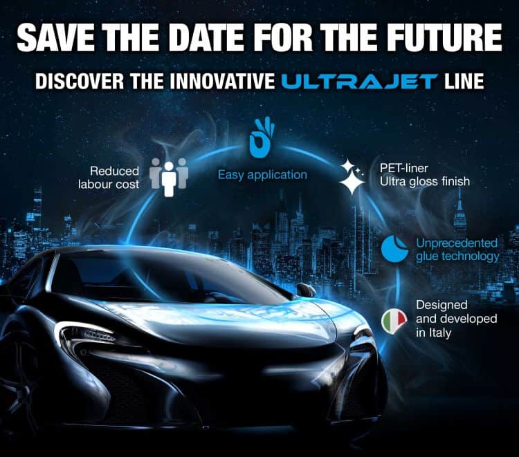APA launches the new UltraJet line, a quality cast film specifically manufactured for wrapping, extremely easy to apply thanks to the innovative adhesive that facilitates the positioning of the film extremely quickly and adheres with the simple pressure of a squeegee.