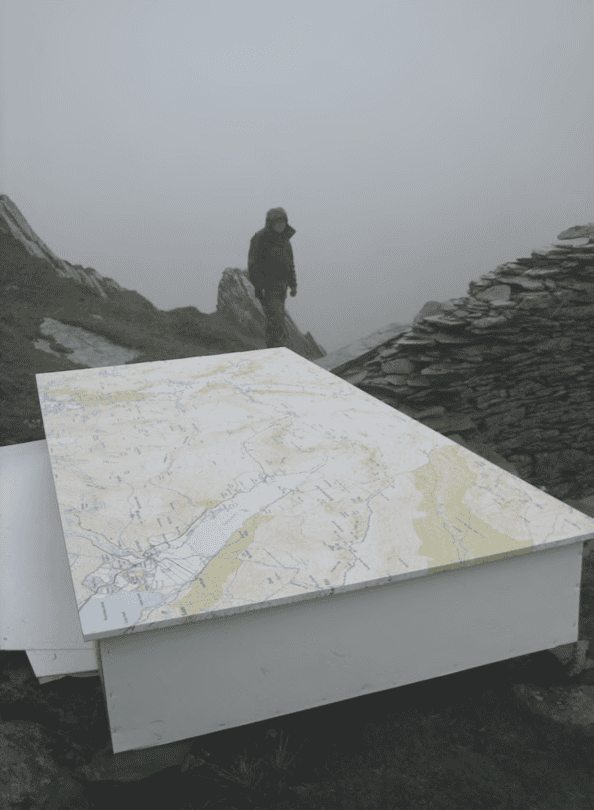 Filming was able to finally take place around midday. Afterwards, because the weather still hadn’t abated it was decided not to attempt to recover the map immediately. A week or so later when the weather had settled, it was a pleasant surprise to find the map still in location and it was retrieved and transported back to Honister Slate mine.