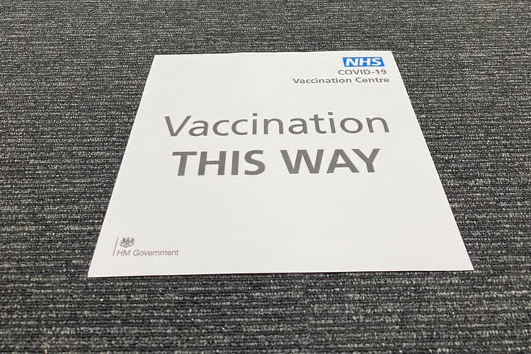 No fewer than five Drytac products deployed by Buckinghamshire-based Globe Print for social distancing markers and directional graphics at new vaccination centre.