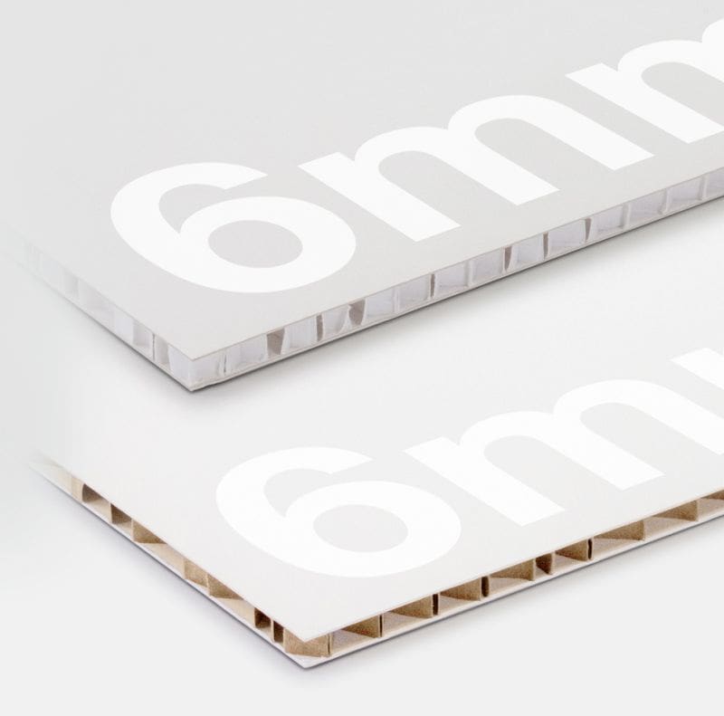 The new boards are a thinner version of traditional Ultra Board and available in 6mm thickness with a traditional brown honeycomb centre or white core, making it the ideal solution for retail displays, boards, and signs. Perfect for wall mounted, hanging, directional signage, they are the ideal sustainable replacement for rigid plastic, PVC or Foam Board.