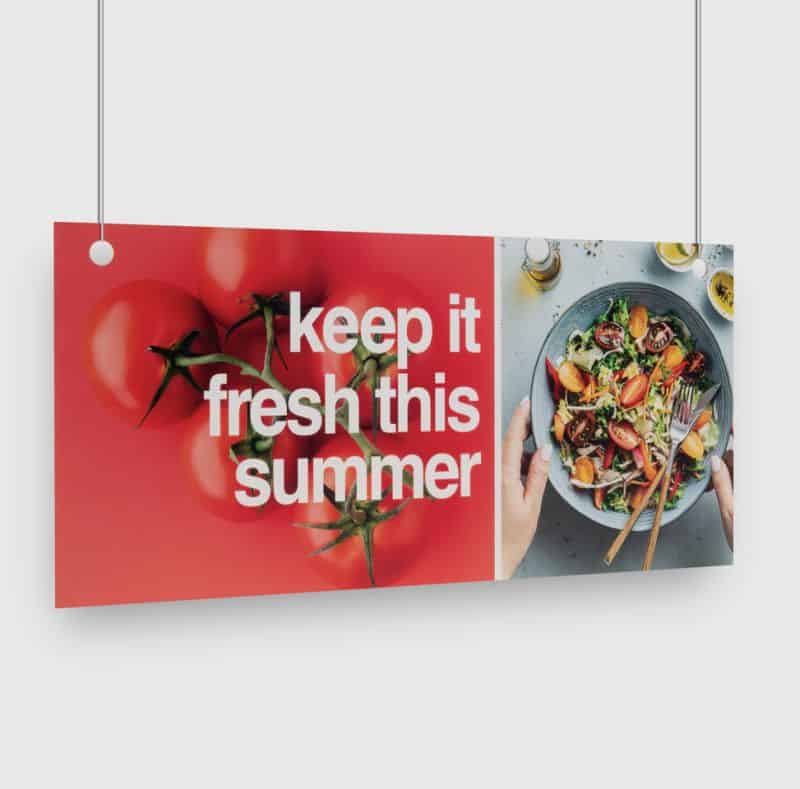 A hanging sign with a stir fry bowl with text saying, Keep it fresh this summer.